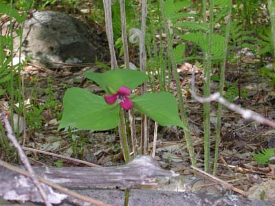 Wildflowers are out. Arlene was particularly looking for trilliums. We haven’t found any on our property, but there are lots along both roads up to the top of the ridge.